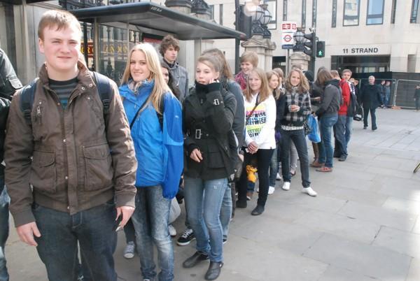 Wie immer diszipliniert: 10a an einer Bushaltestelle